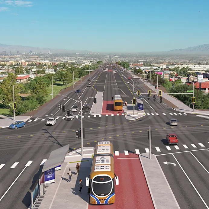 Reimagine Boulder Highway – Phase 2 focuses on improving safety, mobility, and quality of life along Boulder Highway from Charleston Boulevard to Gibson Road/Broadbent Blvd.